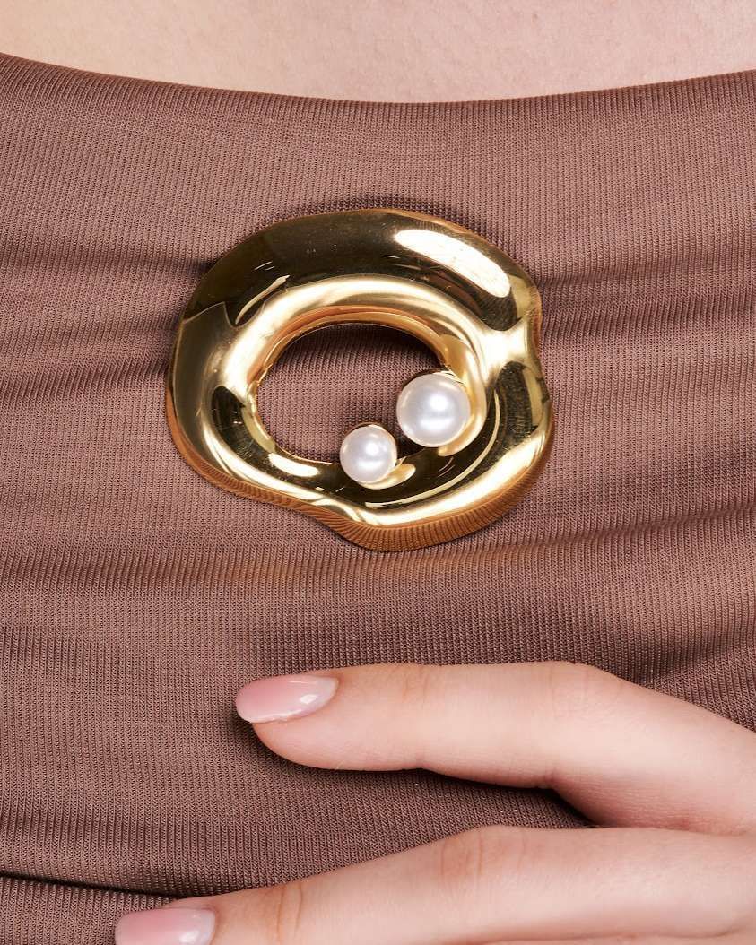 Круглая брошь булавка, воплощение элегантности и современного минимализма. Искусно выполненная из нержавеющей стали, она притягивает взгляд своим лаконичным дизайном и безупречным качеством. В центре композиции – дуэт жемчужин, словно две капли утренней росы, застывшие в объятиях металла. Эти бусины жемчужины придают броши особый шарм и изысканность.