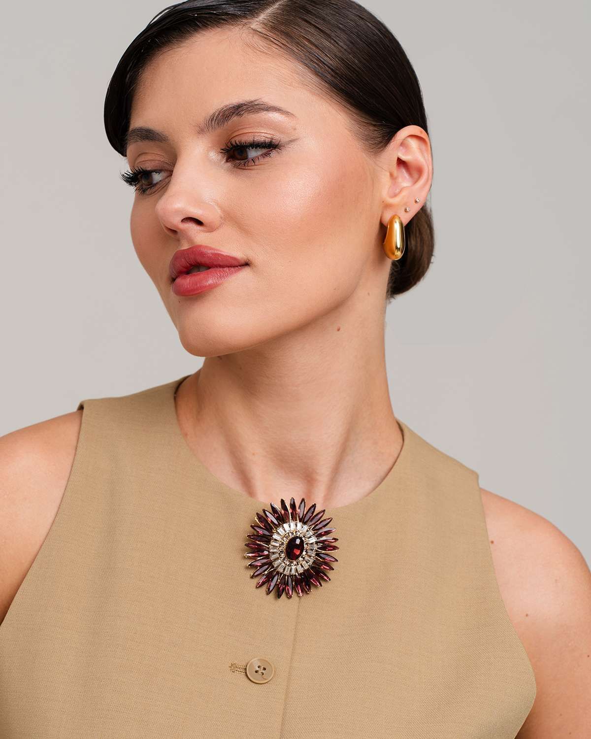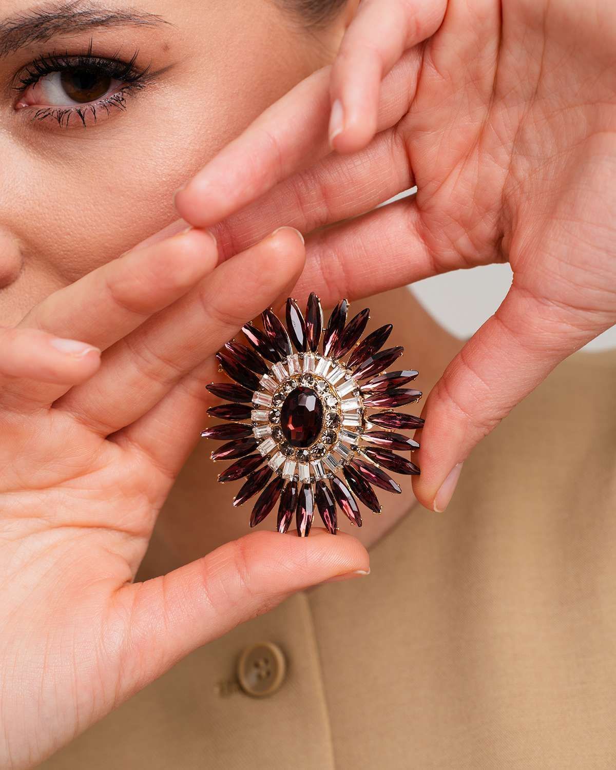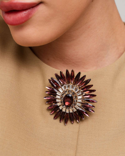 Брошь-булавка с крупными камнями – это практичный и стильный аксессуар. Она не только украшает одежду, но и выполняет функцию застежки, что особенно актуально для шарфов, палантинов и легких жакетов. Круглая брошь, особенно с крупным круглым кристаллом в центре, является классическим вариантом, который всегда в моде. Ее лаконичная форма и сияющий акцент делают ее универсальным украшением, подходящим для различных стилей. Броши с крупными кристаллами привлекают внимание своим блеском и роскошью. Кристаллы, искусно ограненные, играют светом, создавая завораживающий эффект. Стразы, расположенные плотно друг к другу, образуют сверкающее полотно, способное добавить изюминку любому наряду.
