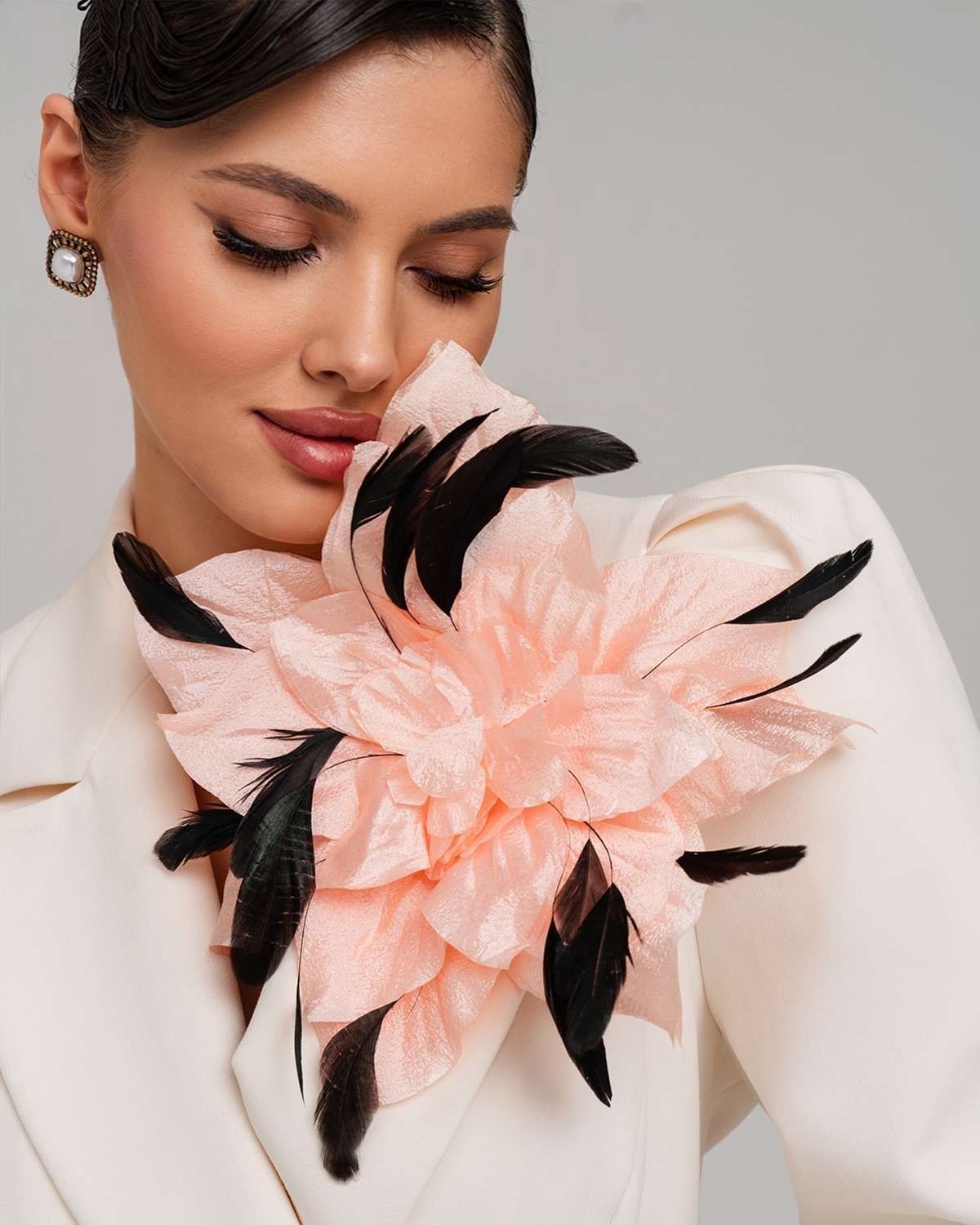 Погрузитесь в мир элегантности с этой большой шелковой брошью в форме цветка, украшенной натуральными перьями. Это украшение ручной работы станет настоящим акцентом вашего образа. Изготовленная из искусственного шелка, брошь сочетает в себе нежность и изысканность, которые подчеркнут ваш стиль. Уникальная особенность этой броши – возможность моделирования формы. Лепестки можно расправить и придать им желаемый изгиб благодаря встроенной проволоке, создавая объемный и пышный вид. Универсальное крепление позволяет использовать брошь как на одежде, так и в качестве заколки для волос, что делает её идеальным аксессуаром для любого случая. Будь то повседневный выход или вечернее мероприятие, эта брошь добавит нотку романтики и изысканности в ваш наряд. Она подчеркнет вашу индивидуальность и безупречный вкус. Такой аксессуар станет отличным подарком для женщины, которая ценит стильные и необычные и красивые украшения.