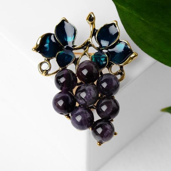 Брошь "Виноград" аметистовый, цветная, цвет золотистый