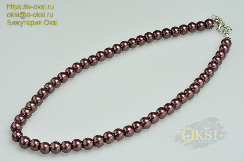 Стильное колье из искусственного жемчуга яркого шоколадного оттенка. Для прочности и долговечности украшения каждая жемчужина перевязана узелком. Диаметр жемчужин 8мм. Длина колье 45 см , колье можно удлинить за счет доп. цепочки - артикул 31200028 .