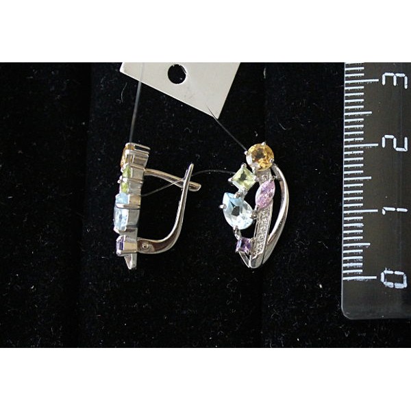 C925 Серьги с аметистом,топазом, хризолитом, цитрином, фианитами, 3,98 г., англ. замок, родирование