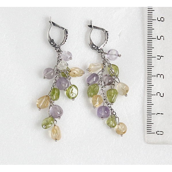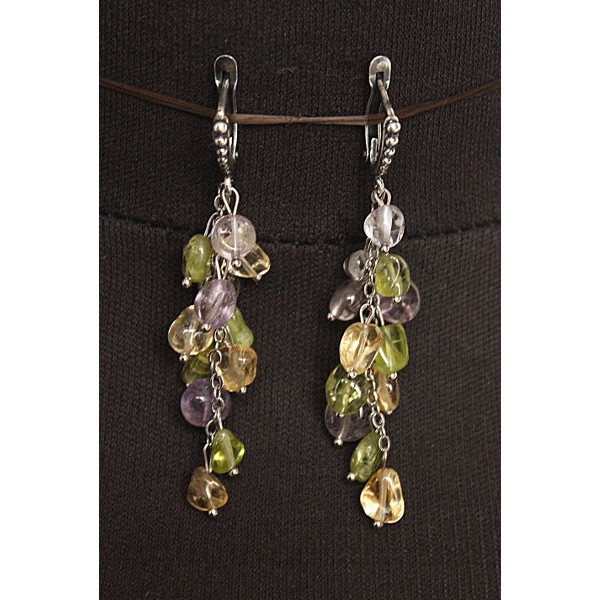 Cерьги из аметиста, цитрина, хризолита на цепочке