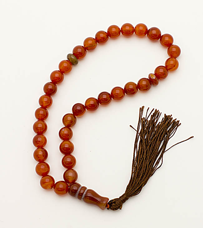 Четки 33 бусины из сердолика. Бусины d-10мм.