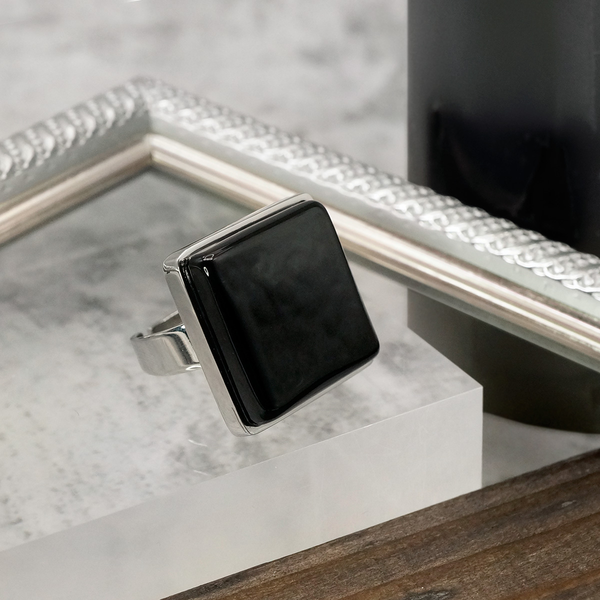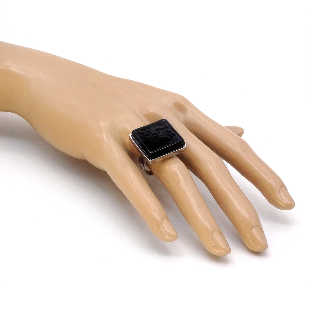 Кольцо изготовлено из муранского стекла и гипоаллергенной ювелирной стали, что очень важно для людей с чувствительной кожей. Металл не темнеет и не подвергается воздействиям окружающей среды, надолго обеспечивая красивый внешний вид изделия.  Размер стеклянного элемента - 2*2 см. Кольцо безразмерное, регулируется с 16 до 19 размера. Вес - 16 гр.