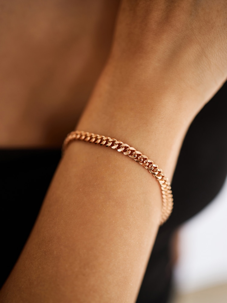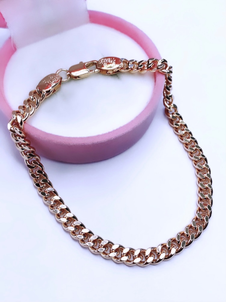 Массивный браслет на изящной женской руке всегда выглядит стильно и придаёт своей обладательнице особенный шарм. Классическое панцирное плетение делает аксессуар надёжным и комфортным в повседневном использовании. Такой браслет непременно поможет сделать ваш образ ещё более запоминающимся и эффектным.