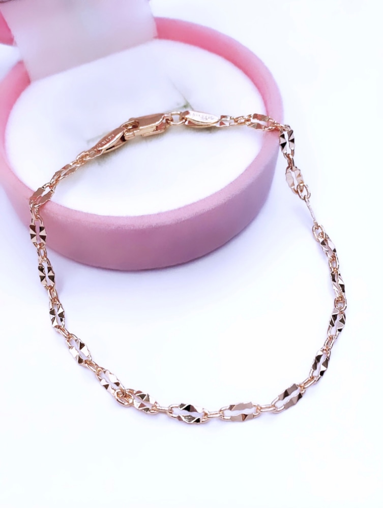 Оригинальное плетение этого браслета притягивает к себе заинтересованные взгляды окружающих словно магнит. Необычный узор звеньев выделяется на фоне классической вязи и подчёркивает индивидуальность своей владелицы. Такой браслет способен стать спутником множества образов и радовать свою обладательницу красотой и изяществом день ото дня.
