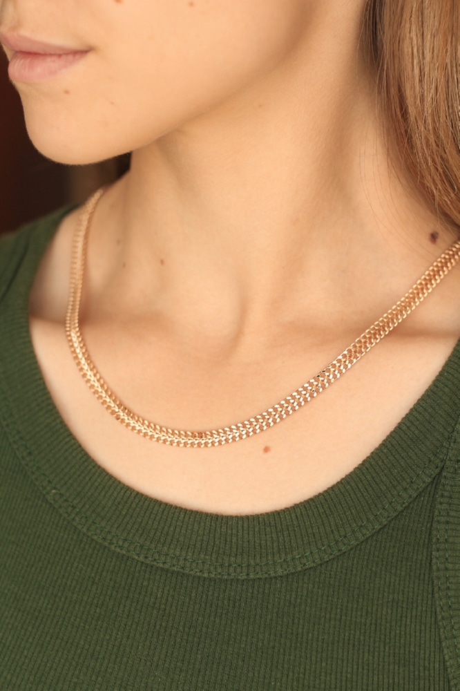Очень надёжное и эффектное плетение этой цепи - "Бисмарк машинной вязки", давно пользуется популярностью у представительниц прекрасного пола всех возрастов. Комфортное в повседневном использовании и привлекающее к себе внимание своим ярким видом украшение, станет одним из любимых в вашей коллекции. Такая цепь самодостаточна и не требует использования дополнительных кулонов или подвесок.