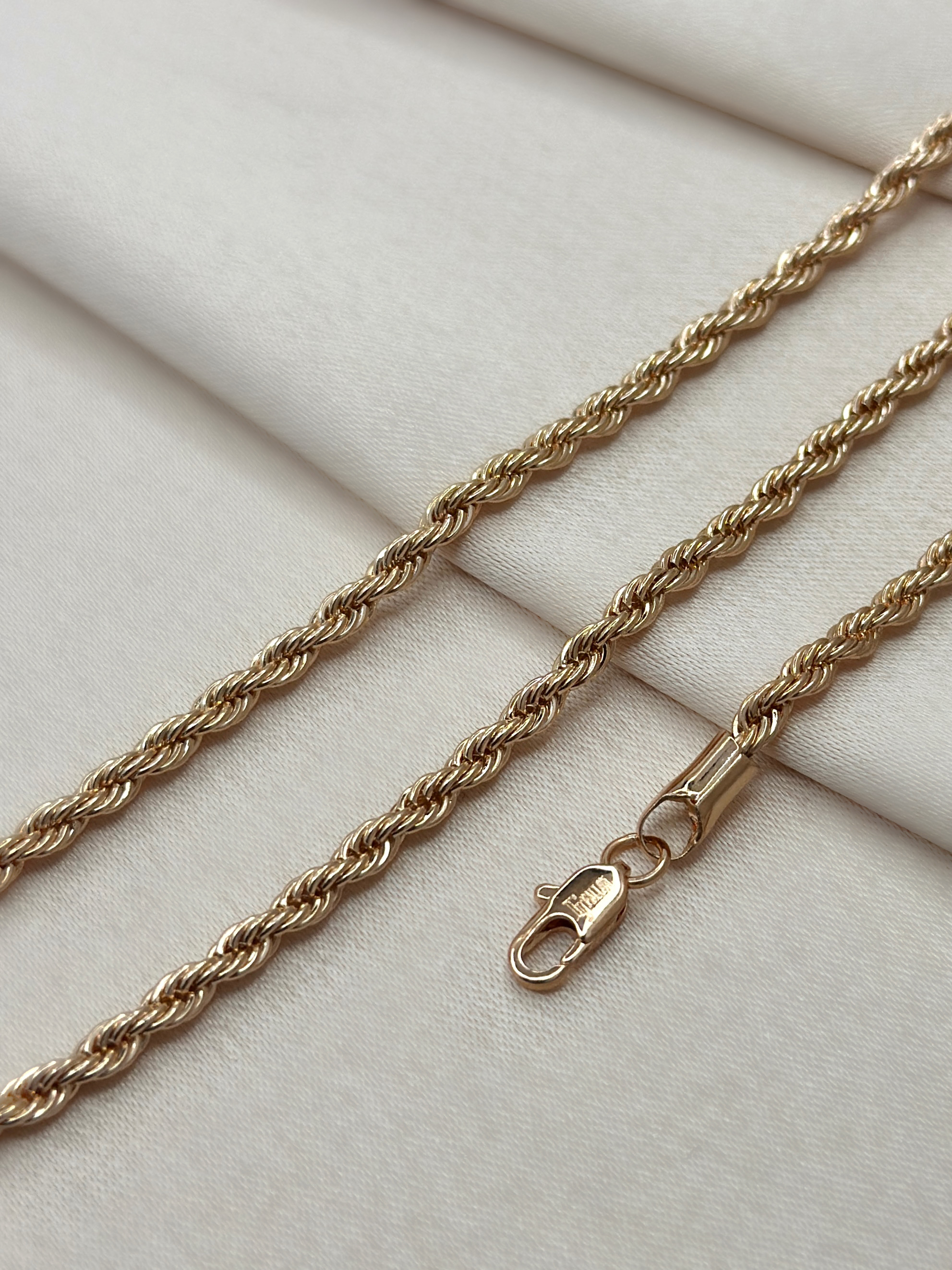 Цепь, созданная с помощью плетения "Верёвка", отличается высокой прочностью и объёмным внешним видом. Такое изделие прекрасно подходит для массивных кулонов или подвесок, однако отлично выглядит и в качестве самостоятельного украшения. Харизматичный внешний вид цепи подойдёт для создания яркого акцента как в мужском, так и в женском образе.