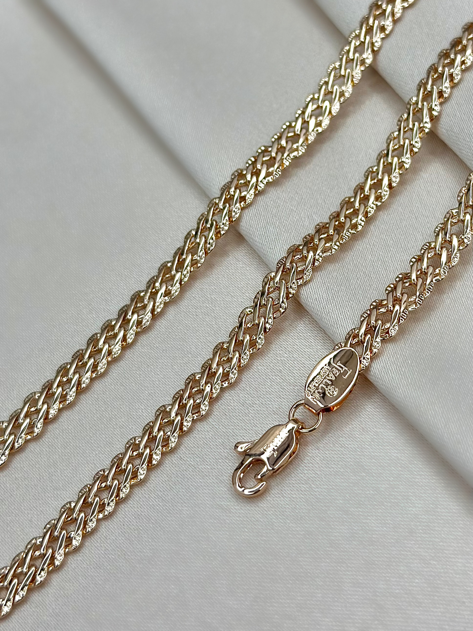 Свой оригинальный дизайн эта цепь получила благодаря необычной технике плетения "Двойной ромб". Яркий орнамент изделия и достаточно массивный внешний вид позволяет носить такое украшения безо всяких дополнительных деталй. Такая цепь прекрасно подойдёт как мужчинам, так и женщинам, и станет стильным элементом повседневного образа.