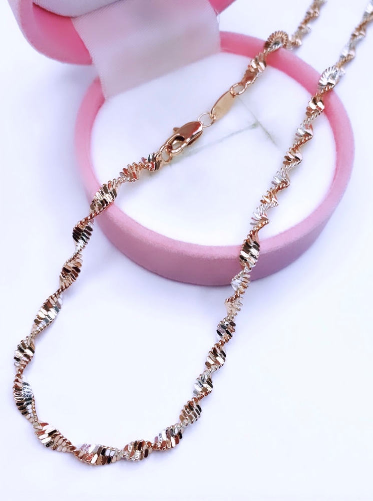Прелесть цепей, изготовленных с использованием техники плетения "Сингапур" - одной из разновидностей панцирного плетения,- состоит в том, что они выглядят очень женственно, но отличаются особой прочностью. Нежный завиток, выступающий изюминкой этого украшения, способен искриться и блестеть от малейшего движения. Такая цепь станет отличным повседневным спутником и будет радовать свою обладательницу день ото дня.