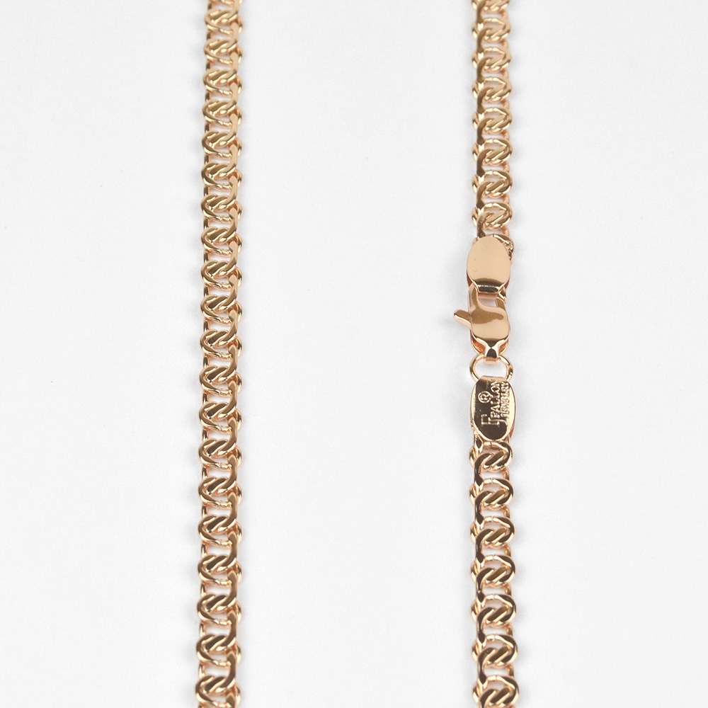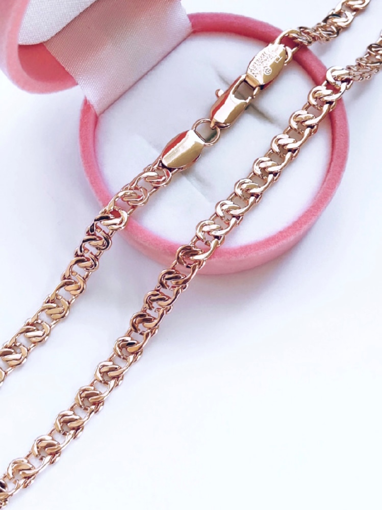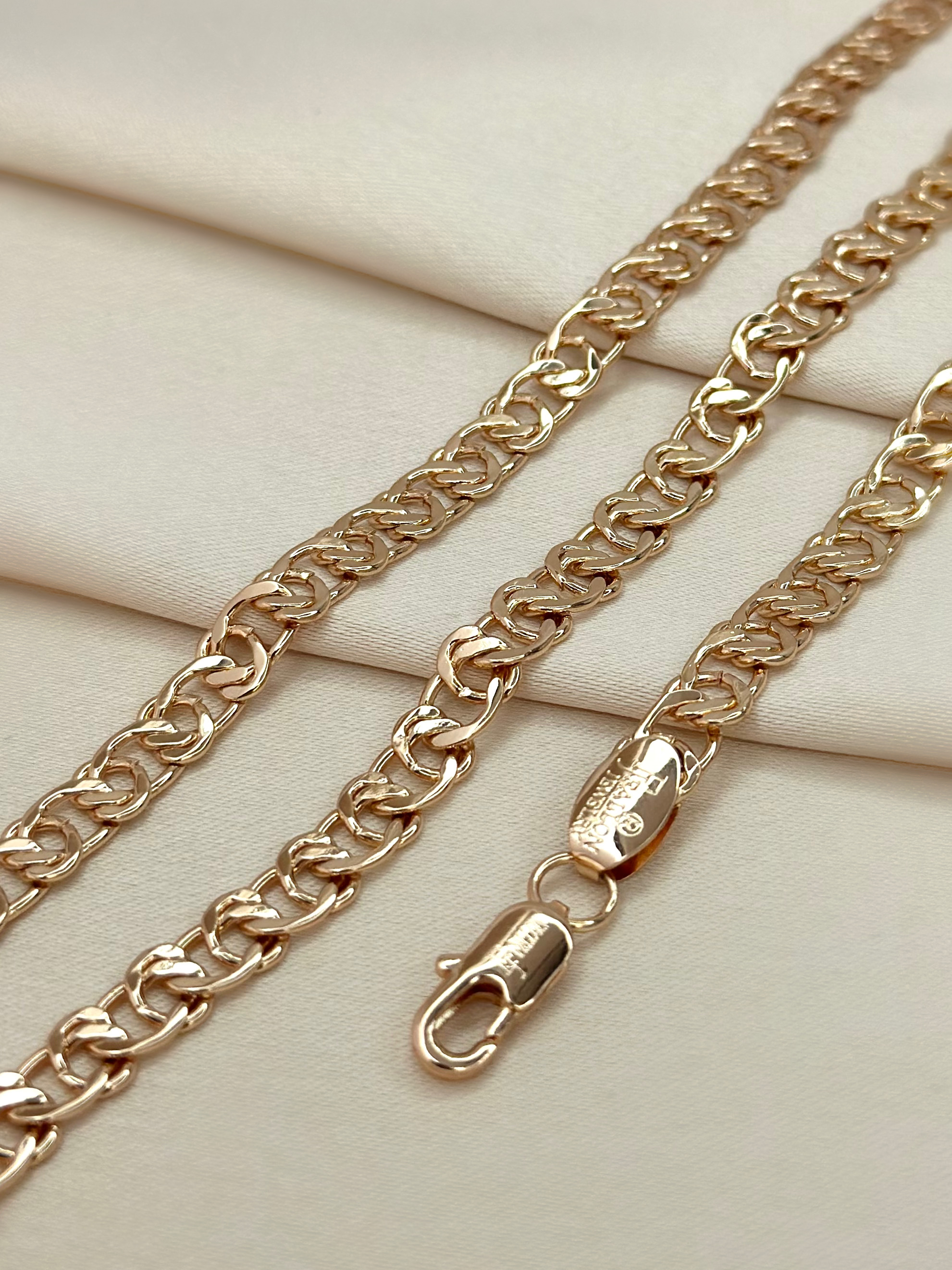 Объёмная цепь всегда притягивает заинтересованные взгляды окружающих к своей обладательнице. Ажурное плетение выглядит элегантно и может внести яркий акцент даже в самый сдержанный повседневный образ. Этот стильный аксессуар станет одним из любимых в вашей коллекции украшений.