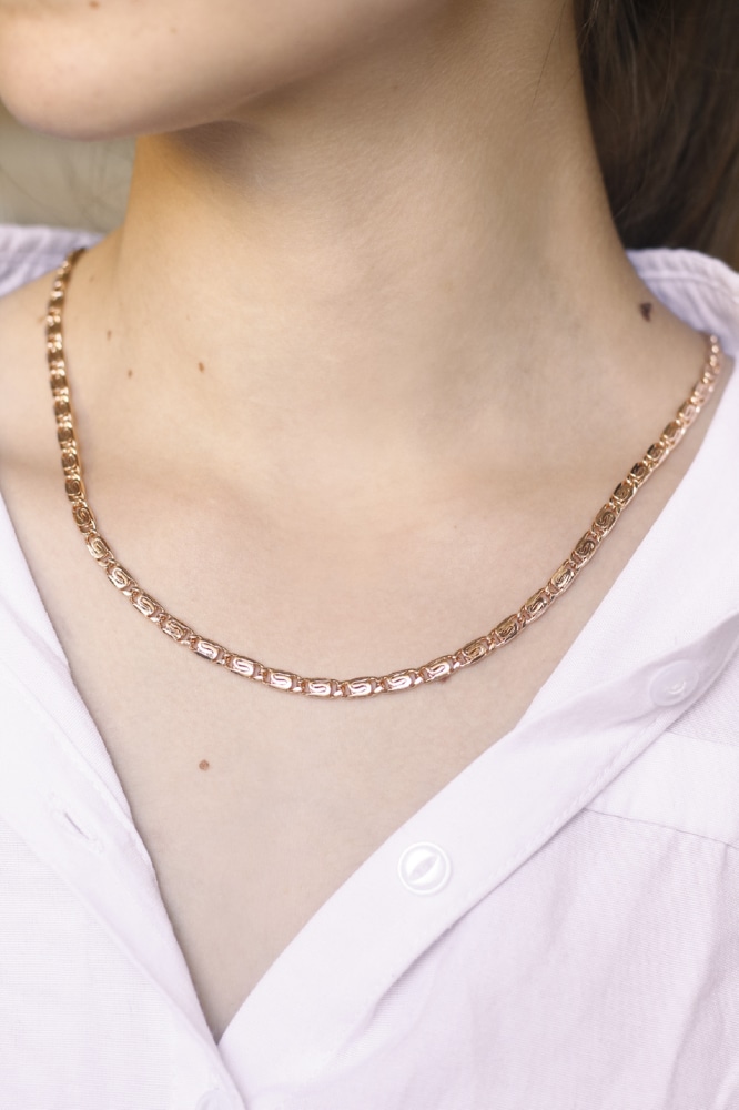 Массивная цепь сочетает в себе яркий дизайн и нежное исполнение. Характерный завиток, присущий технике плетения "Улитка", позволяет каждому звену этой цепи быть завершённым украшением. Такой аксессуар не требует дополнительных деталей, и выступает в качестве самостоятельного и яркого акцента вашего образа.