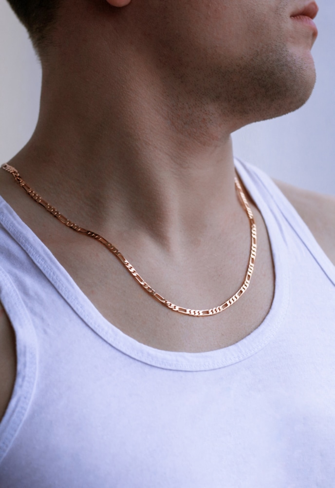 Оригинальная цепь, изготовленная с помощью разновидности панцирного плетения "Фигаро", отличается повышенной прочностью, комфортом в ношении и ярким обликом. Благодаря тому, что звенья украшения расположены в одной плоскости, аксессуар получается гладким, как сплошная металлическая лента, и может быть использован в качестве повседневной детали внешнего вида своего обладателя.