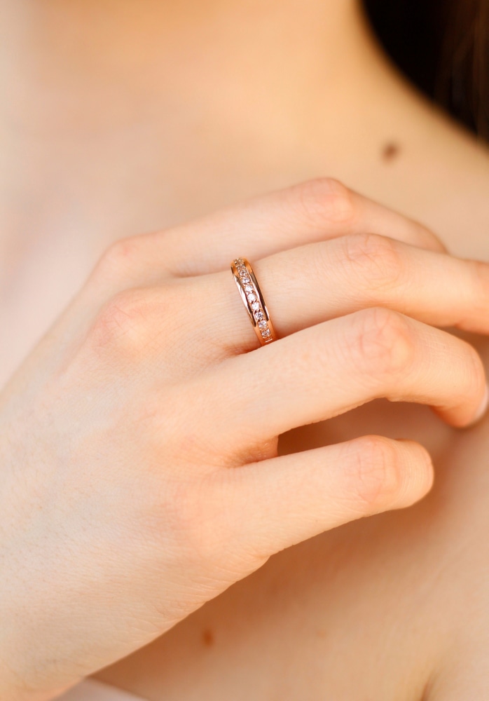 Стильный дизайн и классическое исполнение кольца, делают его незаменимым дополнением практически любого дневного образа. Нежное мерцание прозрачных цирконов и лаконичный облик украшения, подчёркивают изящество рук и прекрасный вкус своей обладательницы. Ищите универсальный аксессуар на каждый день? Это кольцо сделано специально для вас.