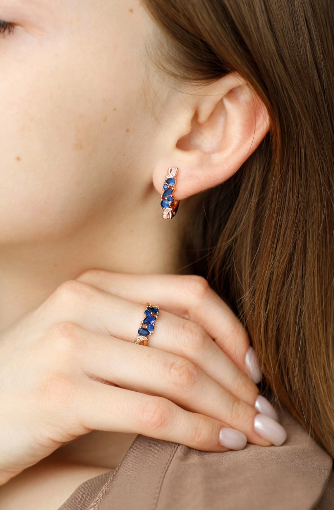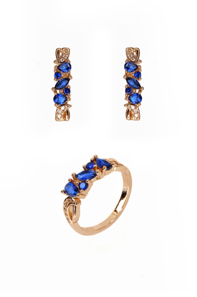 Синий сапфир – королевских кровей камень, самый прекрасный из своего семейства, символ бессмертия, духовной силы и богатства. Хорошей заменой ему станет искусственный камень циркон синего цвета. Роскошный комплект добавит в Ваш вечерний образ некую изюминку.