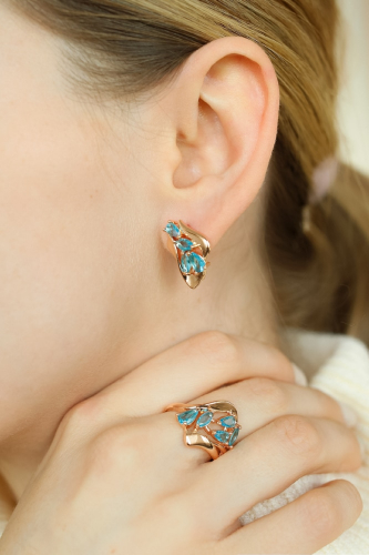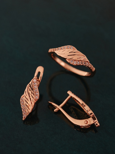 Манящая россыпь минералов рубинового цвета, выступает основой кольца и серёг, входящих в этот великолепный комплект. Яркий и манящий, такой тандем оценят любительницы харизматичный и эффектных украшений. Аксессуары буду безупречно выглядеть с белой офисной рубашкой, или дополнять вечерний образ своей обладательницы.