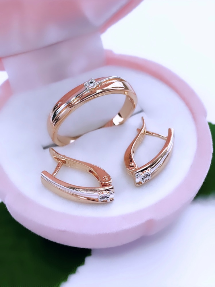 Стильное исполнение комплекта из серёг и кольца сможет дополнить деловой или свободный повседневный образ. Изящная выдержанная форма изделий, с лаконичными вставками из прозрачных мерцающих цирконов, подчёркивает прекрасный вкус обладательницы украшений. Такой комплект станет беспроигрышным подарком, за который вам будут точно благодарны.