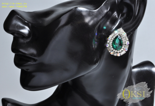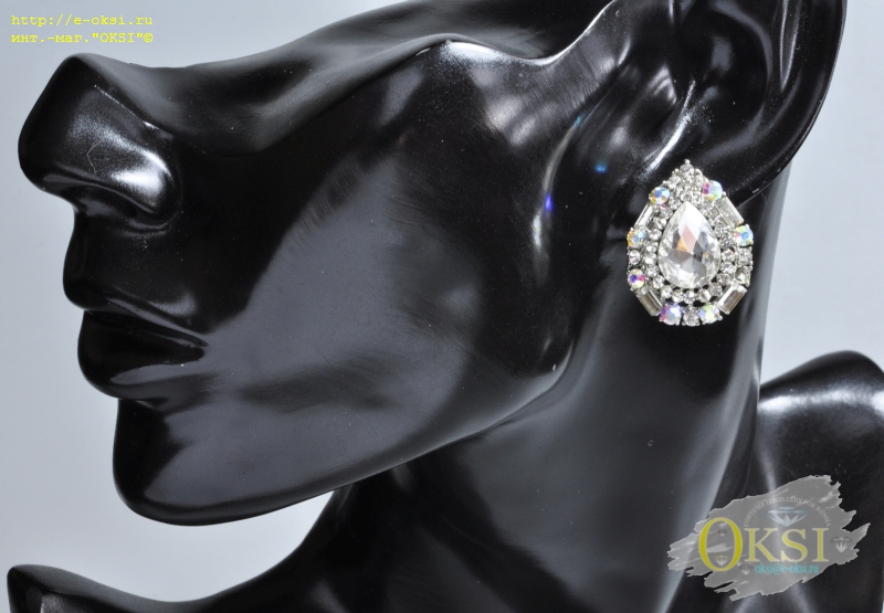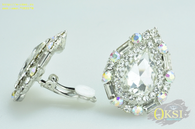 Роскошные сверкающие клипсы в классическом стиле с крупным кристаллом, в обрамлении фианитов с перламутровым блеском. Размер 2,8 см. х 2,3 см..