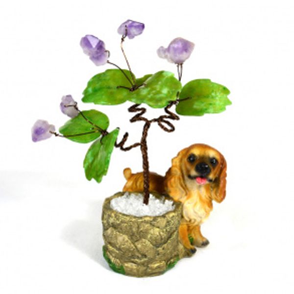 Композиция собачка с цветами из аметиста, 100*100*200мм.