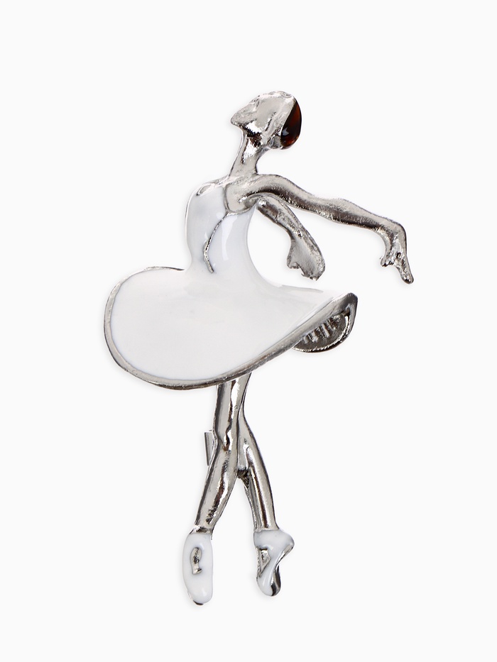 Эта брошь с изображением балерины в пуантах выполнена из металла с эмалью и украшена серебряной фурнитурой. Ее длина составляет 5,5 см, что делает ее заметным и элегантным украшением для женщин и девочек. Такой аксессуар отлично подчеркнет грациозность и изящность, а также станет стильным дополнением к праздничному или повседневному образу.