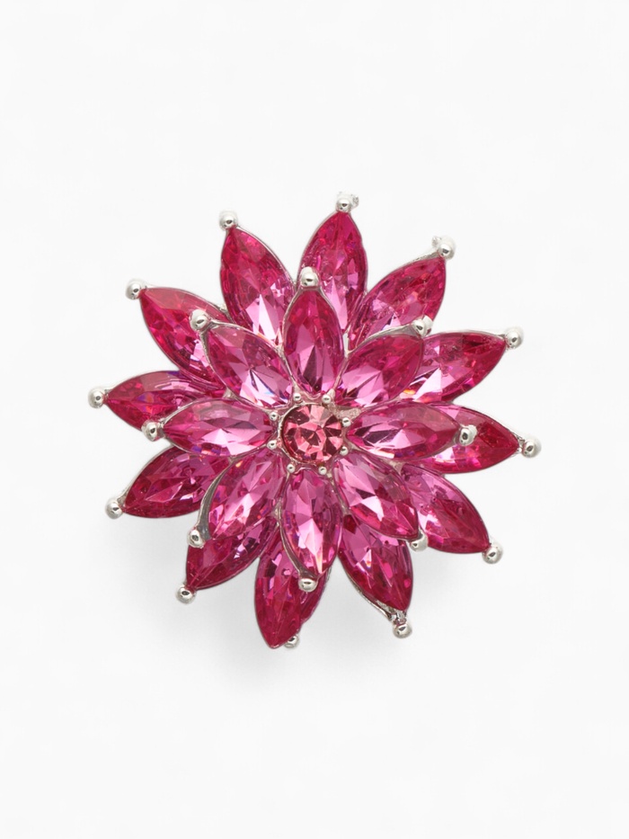 Малиновая брошь в форме хризантемы — символ нежности и утончённого вкуса, воплощённый в изящном металлическом изделии с серебристым покрытием. Длина 5 см позволяет украшению стать выразительным акцентом в образе, при этом сохраняя лёгкость и элегантность.