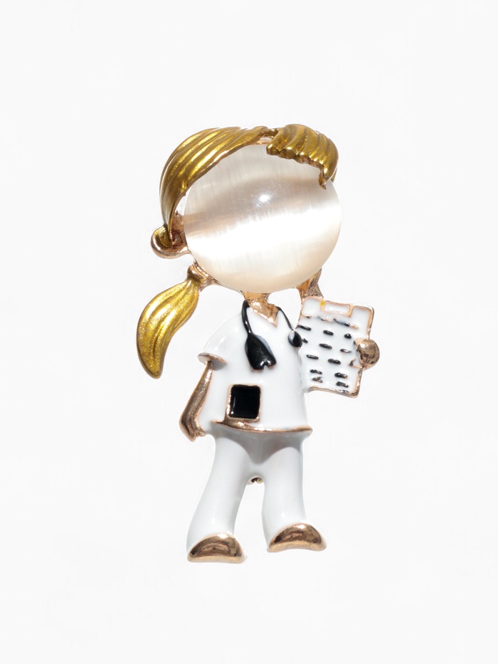 Вдохновляющая брошь в виде девочки-врача — это не просто украшение, а символ заботы и преданности профессии. С длиной всего 4 см, она станет ярким акцентом в вашем образе, подчеркивая вашу индивидуальность и профессионализм. Выполненная из металла с золотым покрытием и украшенная искусственным камнем и эмалью, эта брошь идеально подойдет для медработников, которые хотят выразить свою гордость за выбранную профессию.