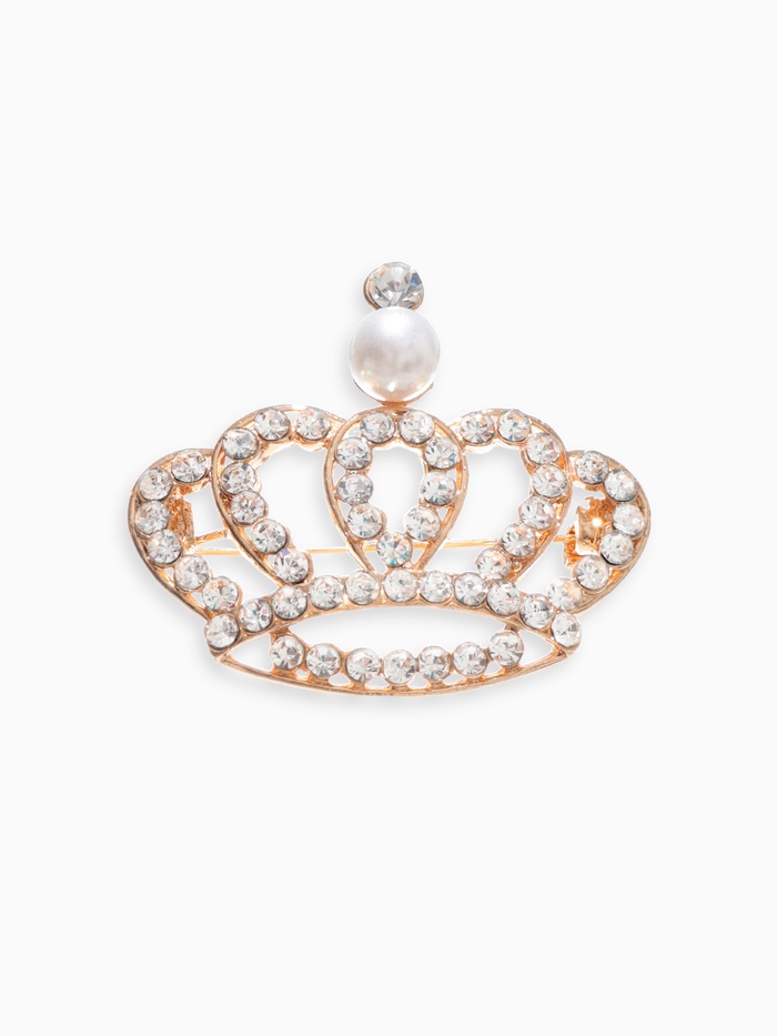 Тонкая грань между классикой и современностью воплощена в изысканной броши в форме короны. Белоснежные стразы и жемчужные акценты на фоне золотистой фурнитуры создают образ, достойный королевского внимания. Это украшение не просто аксессуар — это символ внутренней силы, элегантности и уверенности в себе.