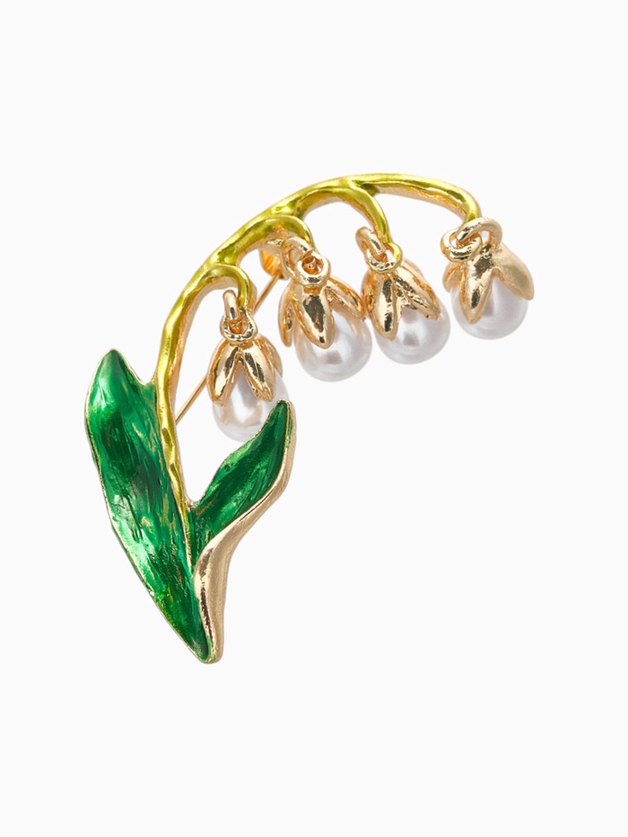 Брошь в виде веточки ландышей с бело-зелёными акцентами и золотистым металлическим основанием — изящное украшение, которое добавит свежести и утончённости в любой образ. Длина 5,2 см позволяет носить её как яркий акцент на одежде, подчёркивая женственность и изысканный вкус.