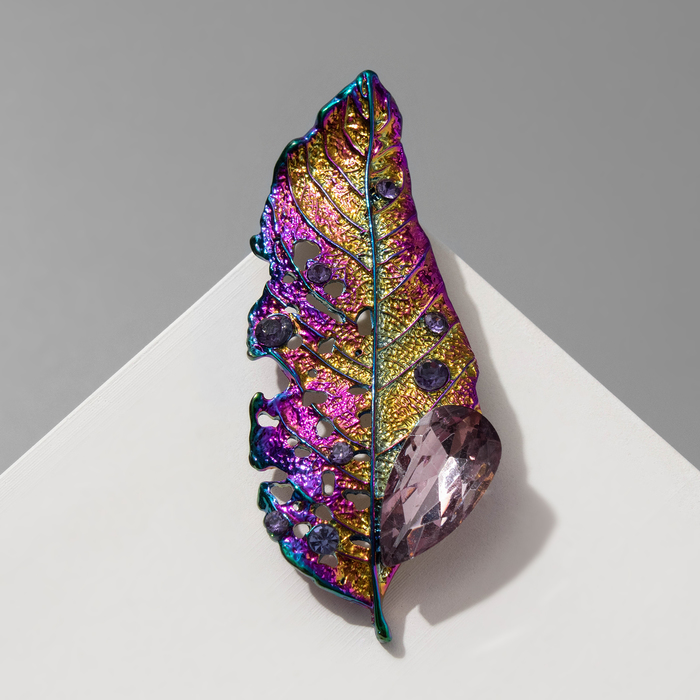 Брошь в форме изящного листа раскрывает всю красоту природных мотивов через игру цвета и текстуры. Металлическое основание с фиолетовой фурнитурой создаёт элегантный контраст, подчёркивая многогранность украшения и его выразительность. Длина 7 см делает аксессуар заметным, но в то же время лёгким акцентом, который гармонично впишется в любой женский образ.