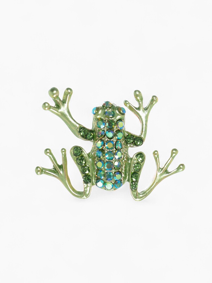 Маленькая, но притягательная брошь в виде волшебной лягушки — это яркий акцент в образе, который не оставит равнодушным ни одну женщину. Зелёный цвет в сочетании с золотистым металлом придаёт изделию благородство и изящество, а вставки из страз и эмали создают эффект живого мерцания.