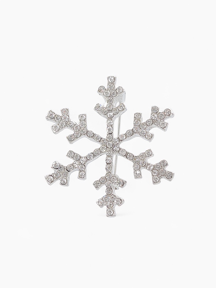 Изделие выполнено из прочного металла с серебристым покрытием, что придаёт ему благородный и современный вид. Аккуратные вставки из сверкающих страз подчёркивают уникальность и праздничность украшения, делая его идеальным аксессуаром для зимних торжеств.