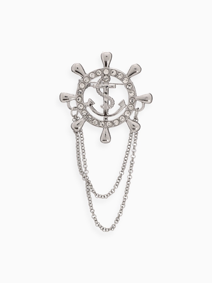 Брошь в морском стиле «Штурвал» с якорем и цепочкой — это изысканный аксессуар, который добавит вашему образу нотку морской романтики и элегантности. Выполненная в белом цвете с серебристыми акцентами, она сочетает в себе лаконичность и изысканность, делая её универсальной для любого случая. Изготовленная из металла и украшенная стразами, брошь отличается прочностью и долговечностью, сохраняя свой безупречный вид на долгие годы.
