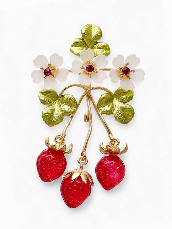 Изготовленная из качественного металла и дополненная яркой эмалью и стразами, эта брошь не только привлекает внимание, но и отличается долговечностью. Тематика цветочной и фруктовой композиции добавляет игривости и свежести, что делает её идеальным выбором для женщин, которые ценят оригинальность и стиль.