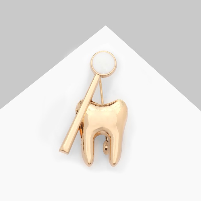 Брошь «Зуб с зеркалом», цвет белый в золоте