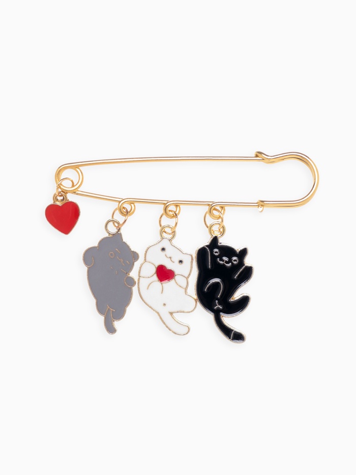 Погрузитесь в мир игривости и очарования с этой великолепной булавкой в форме котят, длина которой составляет 7 см. Яркие цвета и золотая фурнитура делают её настоящим акцентом в любом образе, добавляя нотку веселья и индивидуальности.