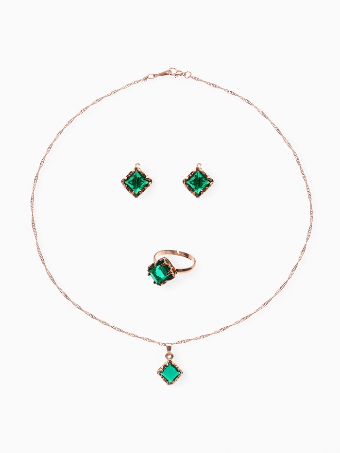 Гарнитур из трёх предметов: серьги, кулон и кольцо — это уникальный набор, который можно носить как вместе, создавая гармоничный образ, так и по отдельности, добавляя акцент в каждую деталь. Кольцо выполнено в безразмерном формате, что делает его универсальным и подходящим для любого женского пальца. Этот комплект сочетает в себе элегантность и практичность, идеально дополняя как повседневный стиль, так и вечерние наряды.
