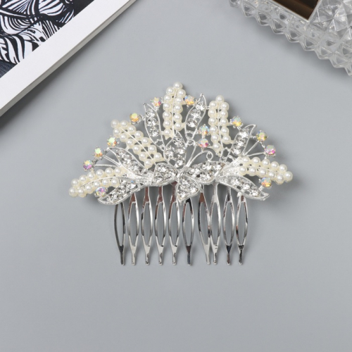 Гребень для волос QF «Келли», бабочка, 8×6 см, серебро