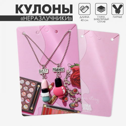 Кулон на цепочке «Радость», лак для ногтей, чёрно-розовый в серебре, 40 см