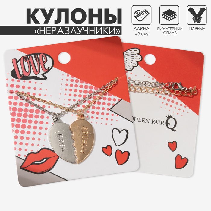Кулоны парные на цепочке Best friends, 45 см, цвет серебряный, золотой