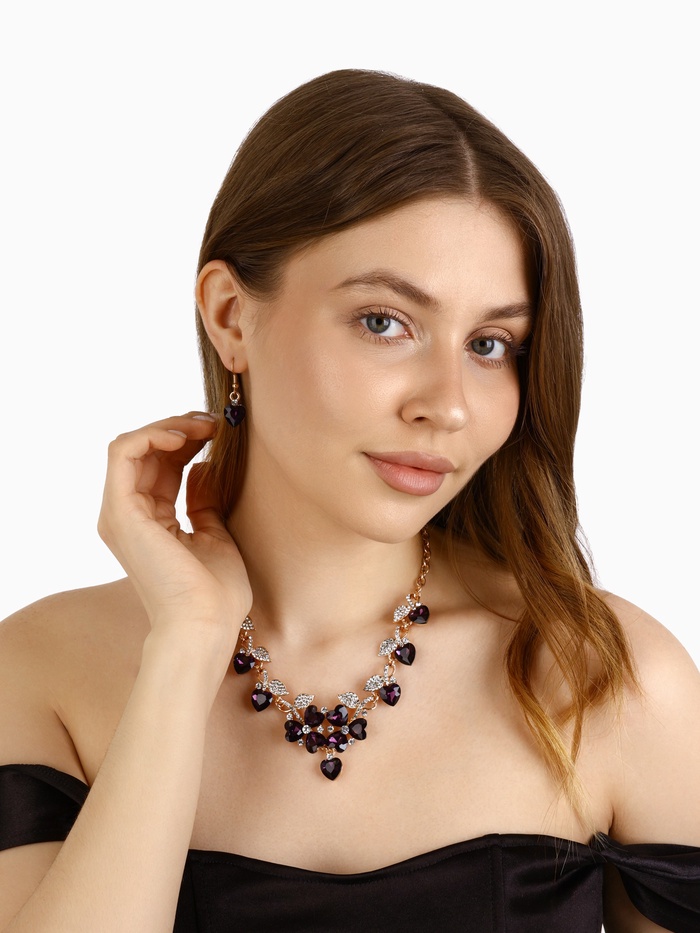 Набор из двух предметов: серьги и колье со стразами — это элегантный аксессуар с уникальным дизайном, который добавит сияния вашему образу. Этот комплект идеально подойдет для любого мероприятия, подчеркивая утонченность и стиль. Серьги и колье можно носить вместе или раздельно, дополняя образы для любого случая.