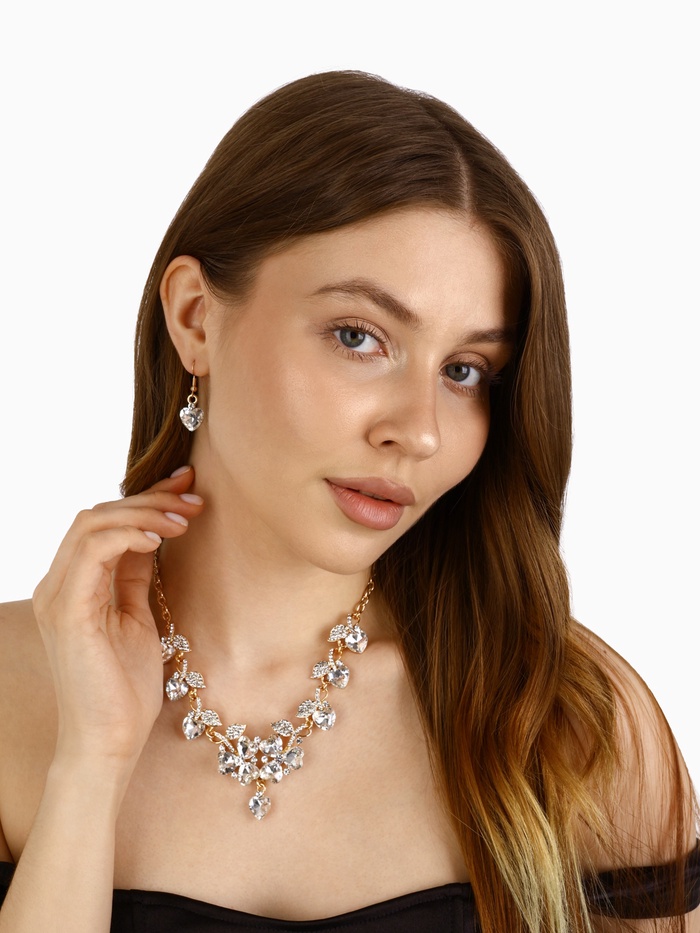 Набор из двух предметов: серьги и колье со стразами — это элегантный аксессуар с уникальным дизайном, который добавит сияния вашему образу. Этот комплект идеально подойдет для любого мероприятия, подчеркивая утонченность и стиль. Серьги и колье можно носить вместе или раздельно, дополняя образы для любого случая.