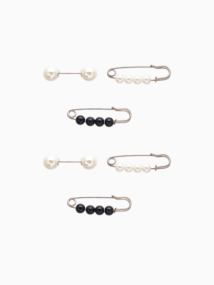 Набор из шести изящных булавок длиной 3,5 см — это стильное дополнение к любому образу, которое привнесёт утончённость и элегантность. Чёрно-белая цветовая гамма в сочетании с серебристым металлическим основанием создаёт гармоничный контраст, подчёркивающий изысканный вкус и универсальность аксессуара.
