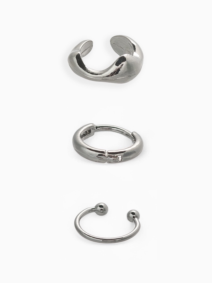 Откройте для себя мир утончённой элегантности с набором из трёх украшений в серебристом цвете, который идеально впишется в ваш стиль. Этот комплект включает серьги с застёжкой-гвоздиком и каффы без прокола длиной 1,1 см, создавая гармоничный и современный образ, который подчеркнёт вашу индивидуальность.