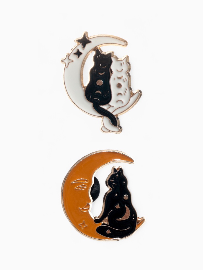Набор из двух изящных значков с изображением котов на Луне — это сочетание утончённости и игривого настроения в одном аксессуаре. Выполненные из металла с качественной эмалью и украшенные золотистой фурнитурой, эти значки длиной 3 см станут стильным дополнением к любому образу, подчеркивая индивидуальность и любовь к необычным деталям.