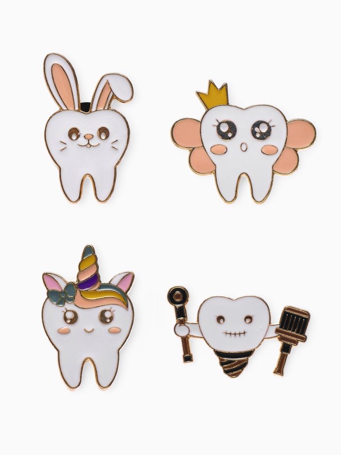 Приготовьтесь добавить яркие акценты в ваш стиль с набором значков, который включает четыре очаровательных значка с изображением зубов в золотом цвете! Эти оригинальные значки, выполненные в разнообразной цветовой гамме и с золотой фурнитурой, идеально подойдут для женщин и девочек, желающих выделиться и выразить свою индивидуальность.