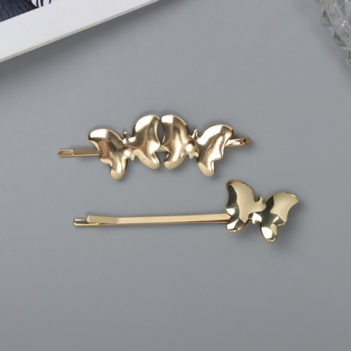 Невидимки для волос «Бенте», набор 2 шт., бабочка, 6 см, золото