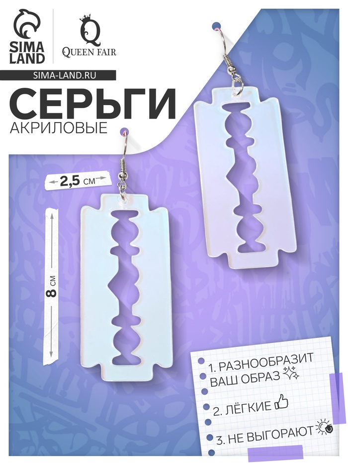Лёгкие серьги с голубыми акриловыми вставками в форме лезвия добавят необычный акцент к вашему образу. Длина 8 см подчёркивает изящество и динамичность, а серебристая металлическая основа создаёт современный и свежий стиль.