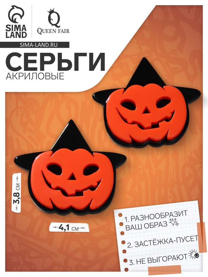 Эти серьги добавляют образу индивидуальность и подчёркивают любовь к тематике осенних праздников. Они легко впишутся в повседневный гардероб и станут ярким дополнением к костюму на Хэллоуин.