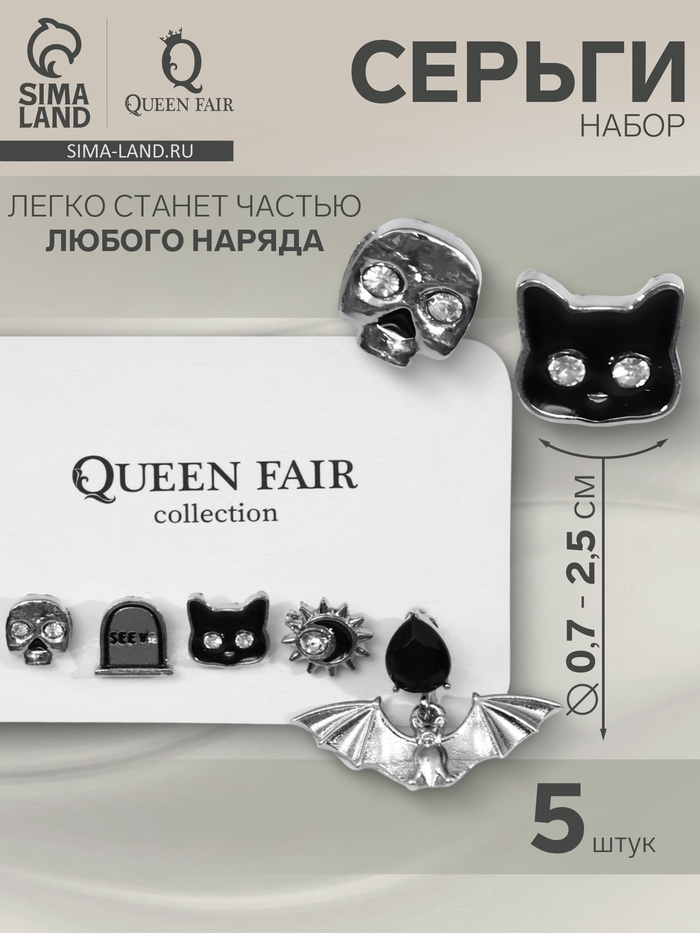 Набор из пяти пар серебристых серег с чёрно-белыми элементами — необычный аксессуар для тех, кто ценит оригинальность и выразительность в украшениях. Длина 6 см подчёркивает стиль и подходит для женщин и девушек, желающих добавить акцент с тематикой готики и Хэллоуина в свой образ.